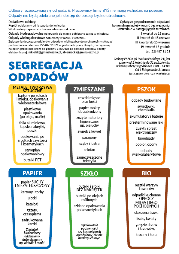 Worki do segregacji odpadów zapewnia Urząd Gminy Leszno i pokrywa koszty ich zakupu.