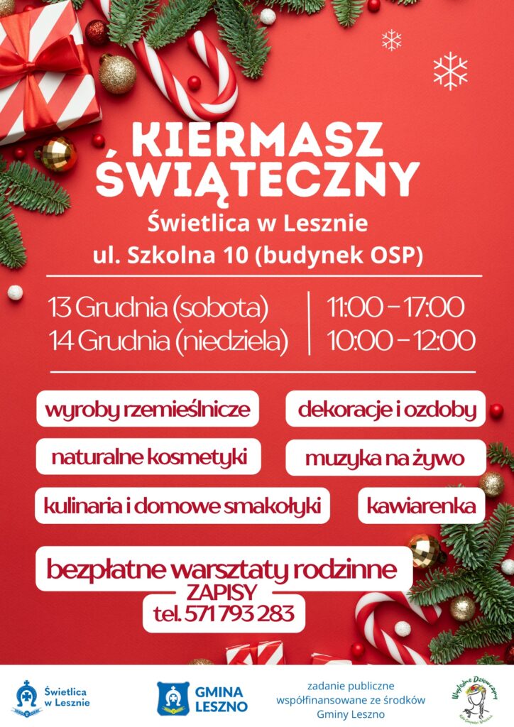Zapraszamy serdecznie na magiczny Kiermasz Świąteczny w Lesznie! Czekają na Was wyjątkowe, ręcznie robione skarby i mnóstwo świątecznych atrakcji!